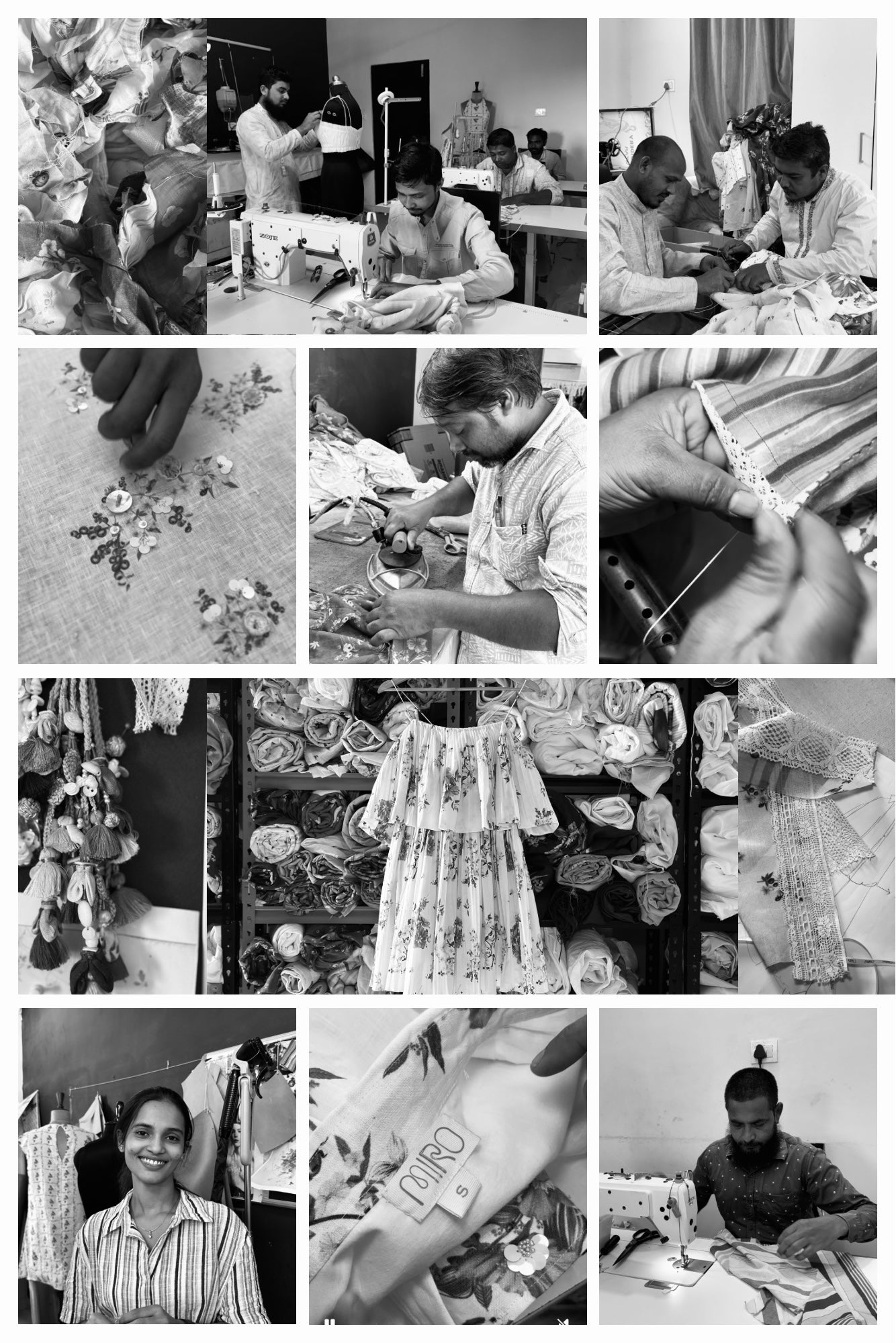 MIRO repurposes excess fabric and leftover materials from past seasons to create sample forms and outfits for upcoming collections.